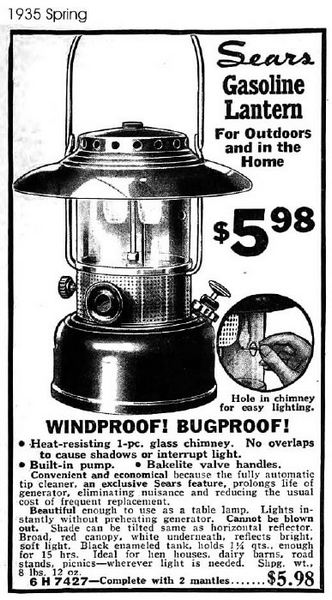 Mais quelle lampe pouvait donc produire tant de chaleur qu'il fallait ainsi l'évacuer ? Carpenter songea aussitôt aux lampes ou "lanternes" dites "à pression" qui fonctionnent grâce à une flamme entretenue par un carburant. De telles lampes furent fabriquées dans divers pays par des constructeurs différents qui eux-mêmes conçurent de nombreux modèles au fil des ans. Carpenter décida de commencer par chercher des lampes fabriquées aux Etats-Unis pour un usage domestique. Quelques grandes marques s'imposaient à lui, comme par exemple Sears ou Coleman. Sur internet, Carpenter découvrit à ce sujet des sites réalisés par des collectionneurs passionnés. Ainsi passa-t-il en revue de nombreuses lampes à pression qui présentaient bien souvent une partie supérieure dont la forme rappelait une soucoupe volante classique, voire même la soucoupe vénusienne. Faisant suite à une sorte de tradition, toutes ces lampes rappelaient un peu les lanternes qui ornèrent jadis les premières automobiles et dont voici quelques exemples :