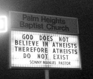 (Dieu ne croit pas aux athées, par conséquent, les athées n'existent pas.)