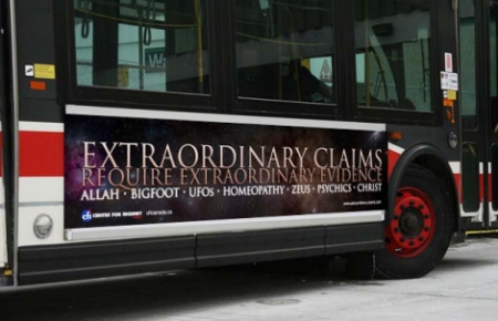 Entre temps, une campagne a été lancée à Montréal. Dix autobus porteurs du message controversé ont circulé au centre-ville dans le cadre d'une campagne de l'Association Humaniste du Québec contre les religions organisées.