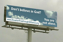 Dans le nord du Texas, deux panneaux d'affichage, l'un sur l'autoroute 35 E, près de l'échangeur 12, à Dallas, l'autre sur l'autoroute 35 O, près de Braswell, à Fort Worth, disaient « Vous ne croyez pas en Dieu? Vous n'êtes pas seul ». À Fort Worth, les autorités du transport en commun ont cédé aux pressions et ont interdit toute forme de publicité de nature religieuse, ce qui inclut les messages de groupes athées.