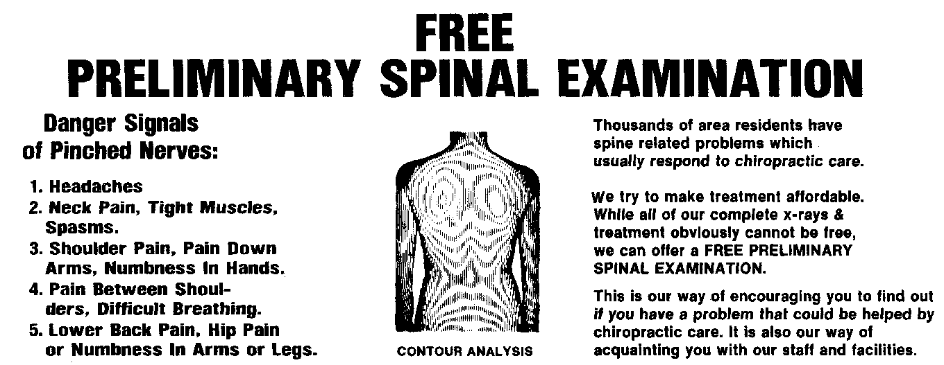 Plusieurs chiropracticiens maintiennent que les motifs moiré donnent des renseignements importants pour déceler des "défauts de la colonne vertébrale" et mesurer le progrès de leur traitement. Toutefois, aucune étude scientifique a démontré qu'ils étaient utiles cliniquement. Les motifs qui dévient de "l'idéal" sont facilement produits en ne plaçant pas le patient proprement. Après le traitement, la correction des ces "anomalies" peut être démontrée avec un autre examen avec le patient placé correctement. L'annonce ci-bas, tirée des pages jaunes d'un annuaire téléphonique, illustre comment un "examen préliminaire gratuit de la colonne vertébrale" avec analyse "contour" est utilisé pour attirer des patients.